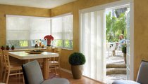 We recently installed the Hunter Douglas Skyline Gliding Window Panels on a client's door. Her challenge was shared by many: too much natural light shining on her television panel left viewers straining to see images. The natural light is welcomed during non-viewing times - but it was important that the room's lighting worked for all of the room's uses.